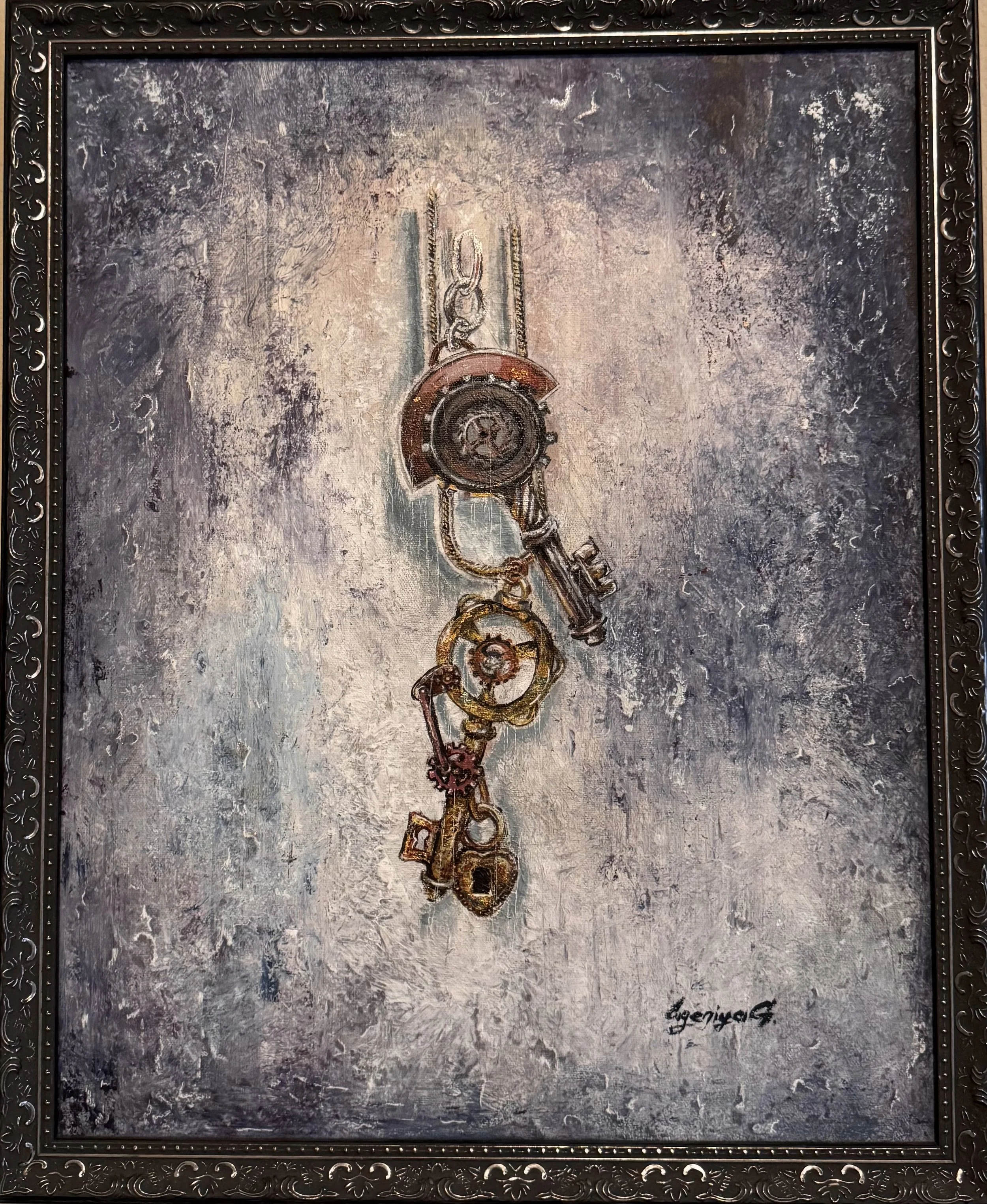 The Choice — a quiet moment suspended in time, where each key holds a different door, and the weight of decision gleams in gold and shadow.