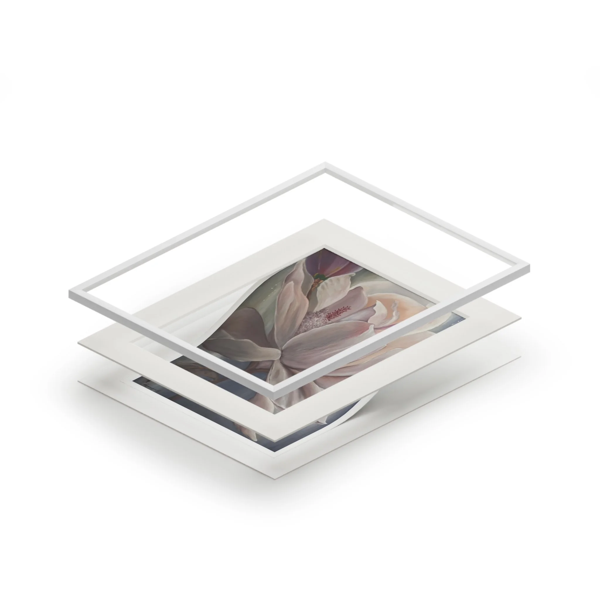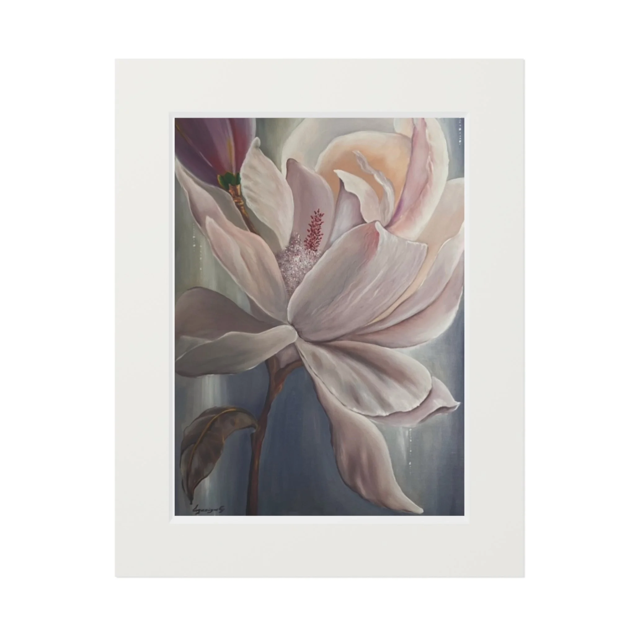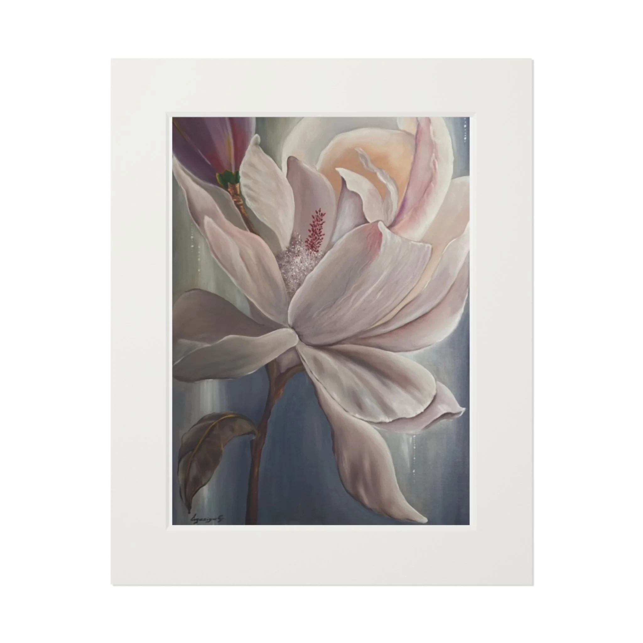 A soft, museum-quality fine art print that brings a quiet, floral moment into your home. Printed with archival giclée inks on 175gsm fine art paper, the image retains bright, luminous colors that hold up to regular sunlight. Each print is presented with a natural white, textured mountboard featuring a 2mm window cut for a gallery-style display that highlights the artwork’s delicate details. Available in two sizes, the print arrives unframed so you can choose a frame that matches your space; light assembly is needed to fit the protective front and mount together. The result feels like a gentle pause—a framed study in petals and muted tones that settles easily into living rooms, bedside walls, or studio corners.