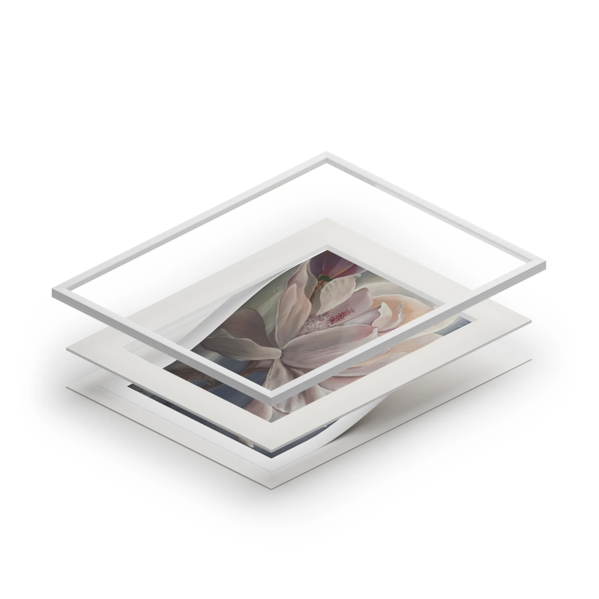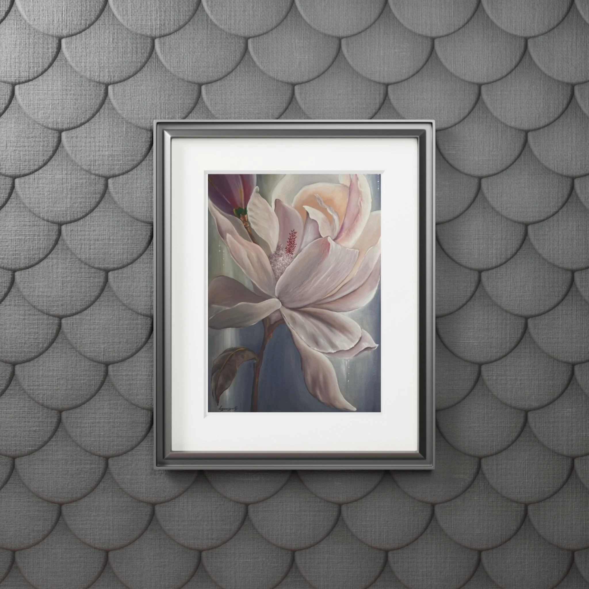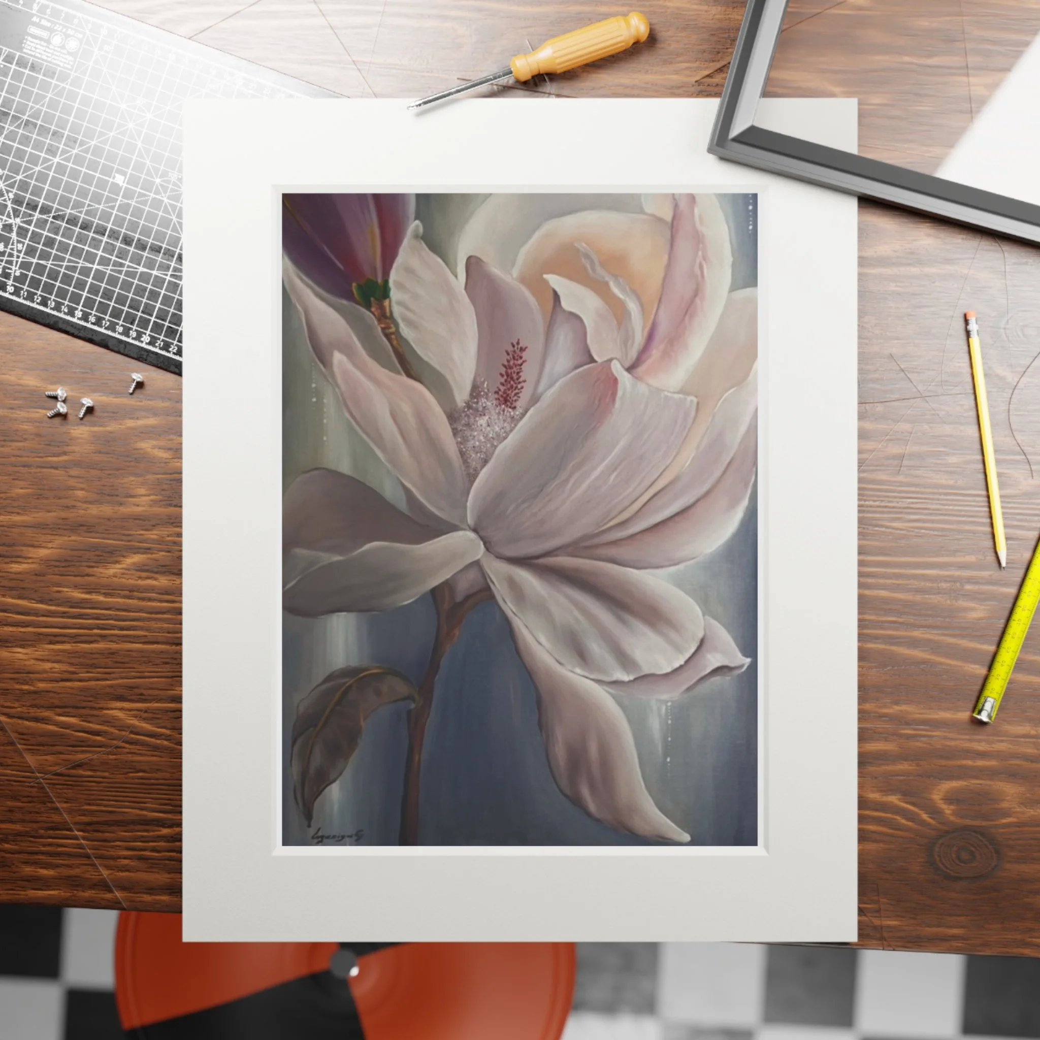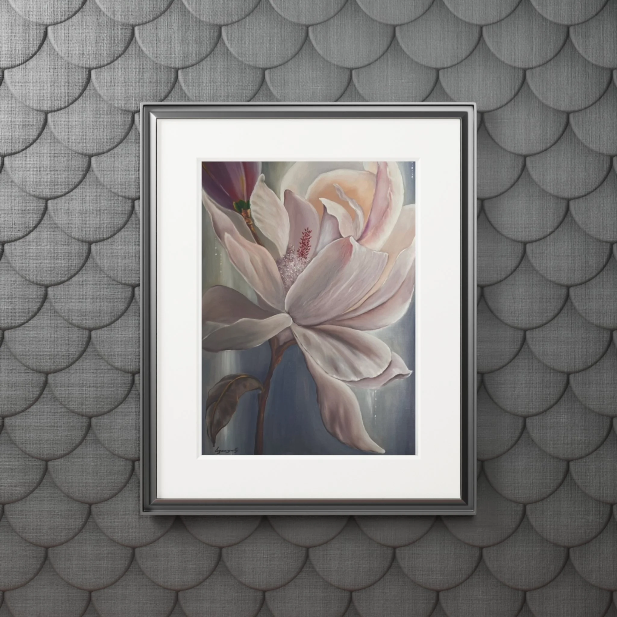 A soft, museum-quality fine art print that brings a quiet, floral moment into your home. Printed with archival giclée inks on 175gsm fine art paper, the image retains bright, luminous colors that hold up to regular sunlight. Each print is presented with a natural white, textured mountboard featuring a 2mm window cut for a gallery-style display that highlights the artwork’s delicate details. Available in two sizes, the print arrives unframed so you can choose a frame that matches your space; light assembly is needed to fit the protective front and mount together. The result feels like a gentle pause—a framed study in petals and muted tones that settles easily into living rooms, bedside walls, or studio corners.